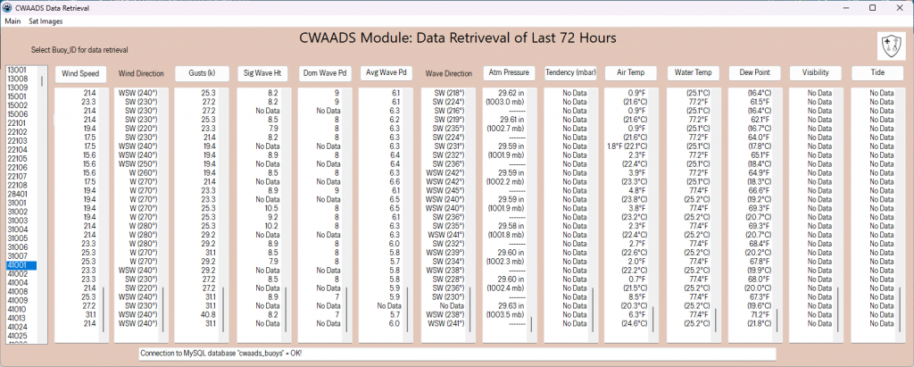 - Interactive map denoting the location of the buoys